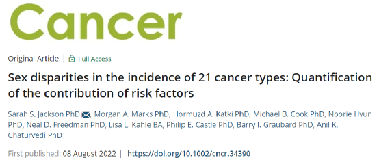 2.Sarah S Jackson. et al. Sex disparities in the incidence of 21 cancer types: Quantification of the contribution of risk factors. Cancer. 2022.