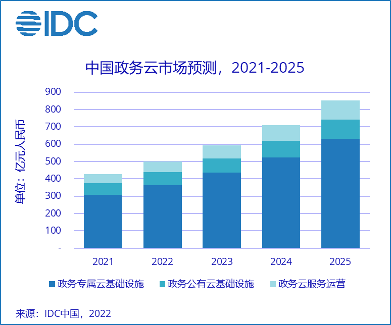 IDC:2021年政务云整体市场规模为427.16亿元人民币 同比增长21.47% IDC发布的《中国智慧城市数据跟踪报告》显示:2021年政务云整体市场规模为427.16亿元人民币,同比增长21.47%。 IDC预计,包括政务专属云基础设施、政务公有云基础设施,以及政务云服务运营在内的政务云整体市场在未来三到五年将继续保持稳健增长态势。 政务云基础设施市场(专属云+公有云)规模达375.08亿。其中政务专属云基础设施市场达308.4亿元人民币,同比增长20.85%;政务公有云基础设施市场为66.68亿元人民币,同比增长23%。 另外政务云服务运营市场为52.08亿元人民币,同比增长23.3%。 更多阅读:IDC:2022年政务云整体市场规模为500.52亿元人民币 同比增长17.17%IDC:2021年第二季度全球智能手机出货量3.13亿部 增长13.2%IDC:2021年上半年中国公有云服务整体市场规模(IaaS/PaaS/SaaS)达到123.1亿美元IDC:预测2026年亚太地区公共云服务达到1536亿美元IDC:2022上半年中国专属服务市场整体规模达到121.9亿元人民币 同比增长27.7%IDC:2021年下半年中国公有云服务整体市场规模(IaaS/PaaS/SaaS)达到151.3亿美元IDC:2021下半年中国金融云市场规模达到39.0亿美元 同比增长达39.3%IDC:2021上半年中国整体云运营服务市场规模为129.8亿元人民币IDC:2024年云基础设施支出同比增长超过26%IDC:预计2024年全球公共云服务收入将超过8000亿美元IDC:2024年全球边缘计算支出将达到2320亿美元IDC:2023年全球云基础设施支出达1006亿美元IDC:未来五年云基础设施市场复合年均增长率为17.8%IDC:2025年亚太地区云支出将达到2500亿美元IDC:2024年第三季度云部署支出达到573亿美元 同比增长115.3%