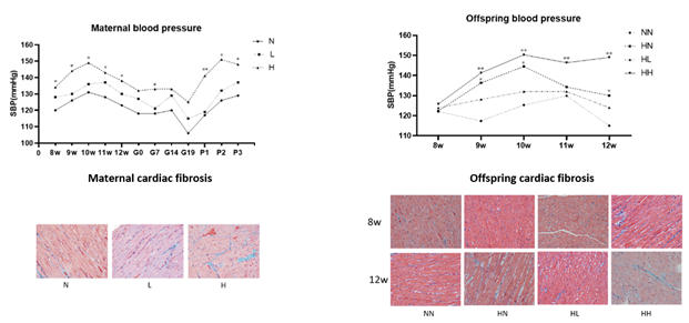 在评论该实验时,共同通讯作者陈兢思解释说:“我们把怀孕的雌性大鼠分成三个独立的小组,给每个小组喂食含有不同浓度盐的食物(高、正常和低)。为了探索母体高盐饮食对高血压的影响,我们监测了母体和其最终后代的血压和尿蛋白水平。我们发现,怀孕期间高盐暴露的后代的血压高于子宫内正常盐暴露的后代的血压,即使他们在断奶后都被喂以正常饮食。这表明,子宫内的高盐环境已经影响到婴儿的发育,并在他们过渡到成年后继续影响他们。”