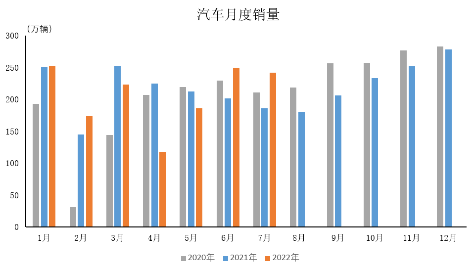 2022年7月,汽车产销分别达到245.5万辆和242万辆,环比下降1.8%和3.3%,同比增长31.5%和29.7%,增速均高于上月。