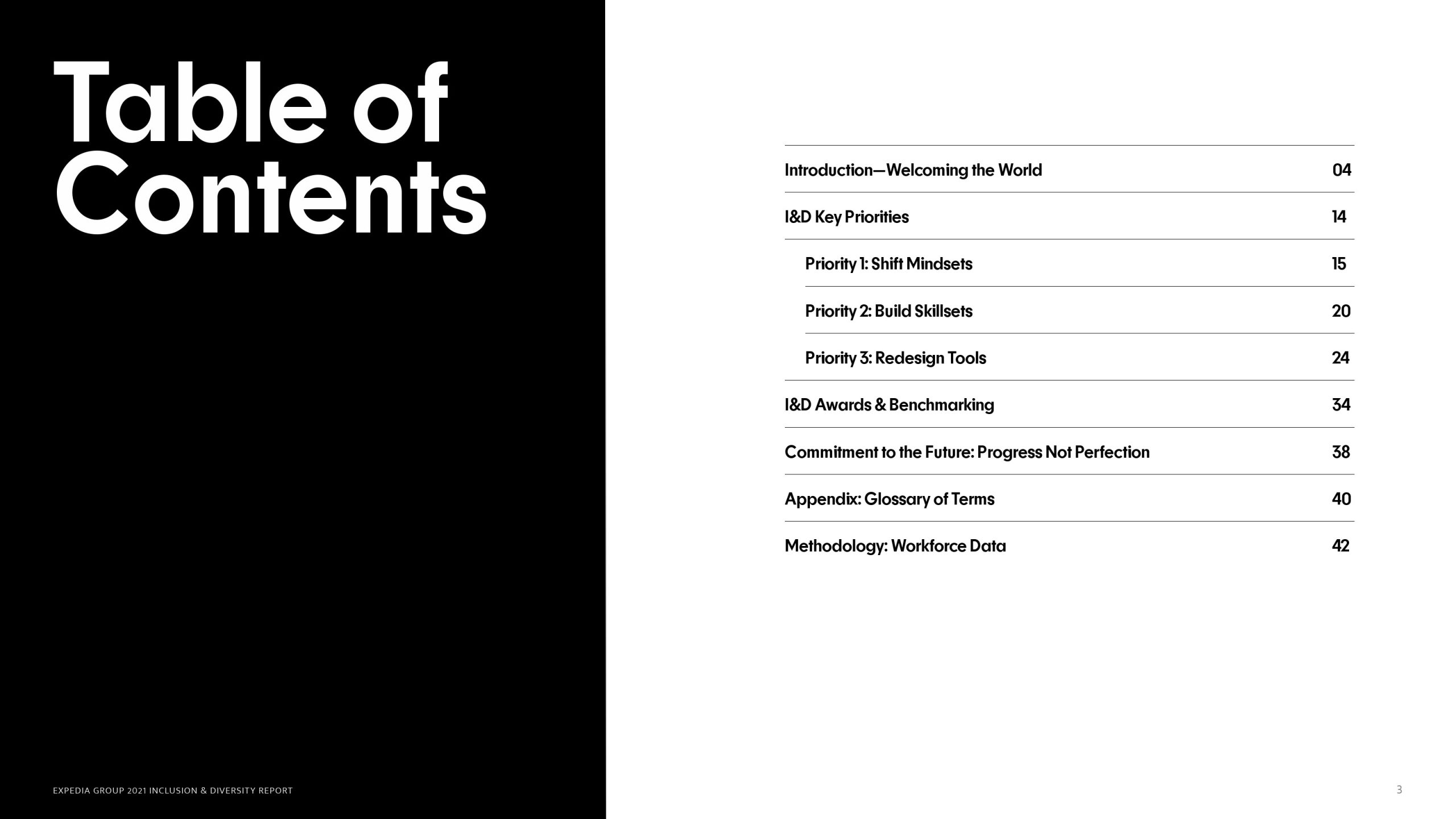 Expedia Group发布了“2021年包容性和多样性报告”。Expedia Group 根据员工数据和员工代表的重要性设定 I&D 招聘和计划目标。与世界各地的许多公司一样,我们设定了这些目标,同时也在应对各种市场条件。