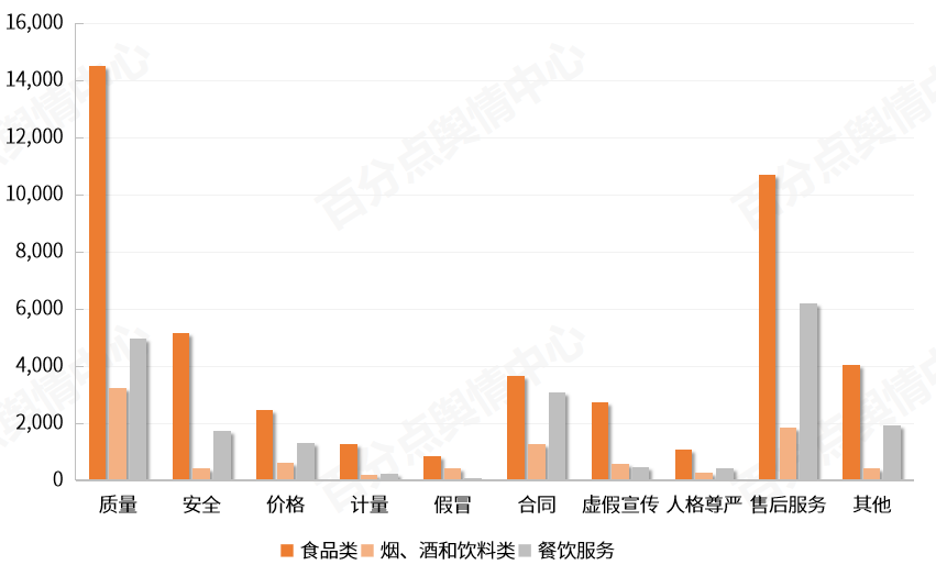 根据统计,上半年全国消协组织共受理消费者投诉551,780件,同比增长5.71%。在具体商品投诉中,食品的投诉量以37,716件位居第一,同比增长38.23%。在具体服务投诉中,餐饮服务投诉量以20,509件位居第二,同比增长4.98%。在投诉细分类型中,食品、餐饮服务关联类别的质量、安全、售后服务的投诉占比最高。