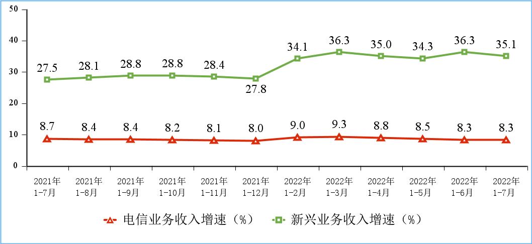 今日,工信部发布了《2022年1—7月份通信业经济运行情况》。数据显示,1—7月份,我国电信业务收入累计完成9442亿元,同比增长8.3%,增速与上半年持平。按照上年不变价计算的电信业务总量同比增长22.2%。