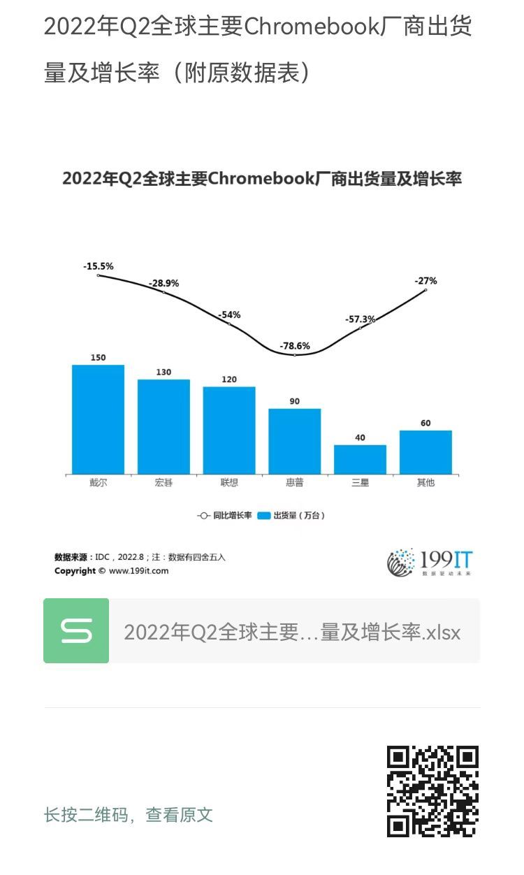 - 2022年Q2全球主要Chromebook厂商出货量及增长率(附原数据表)