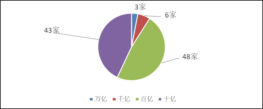 图表 3:2021 年我国零售百强中万亿、千亿、百亿、十亿级企业家数