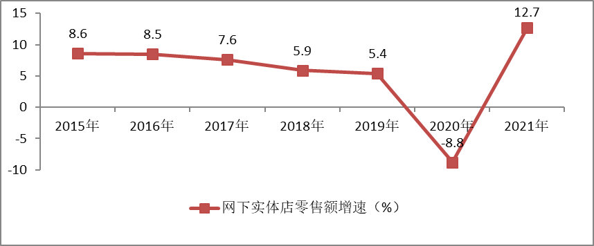 图表 7:2015 年 – 2021 年网下实体店零售额增速(%)