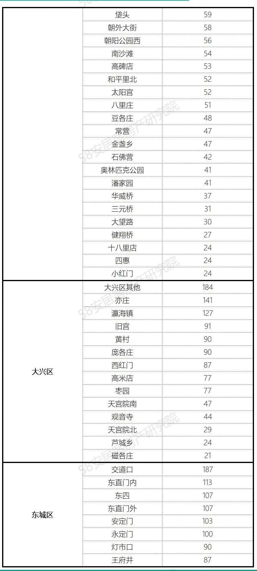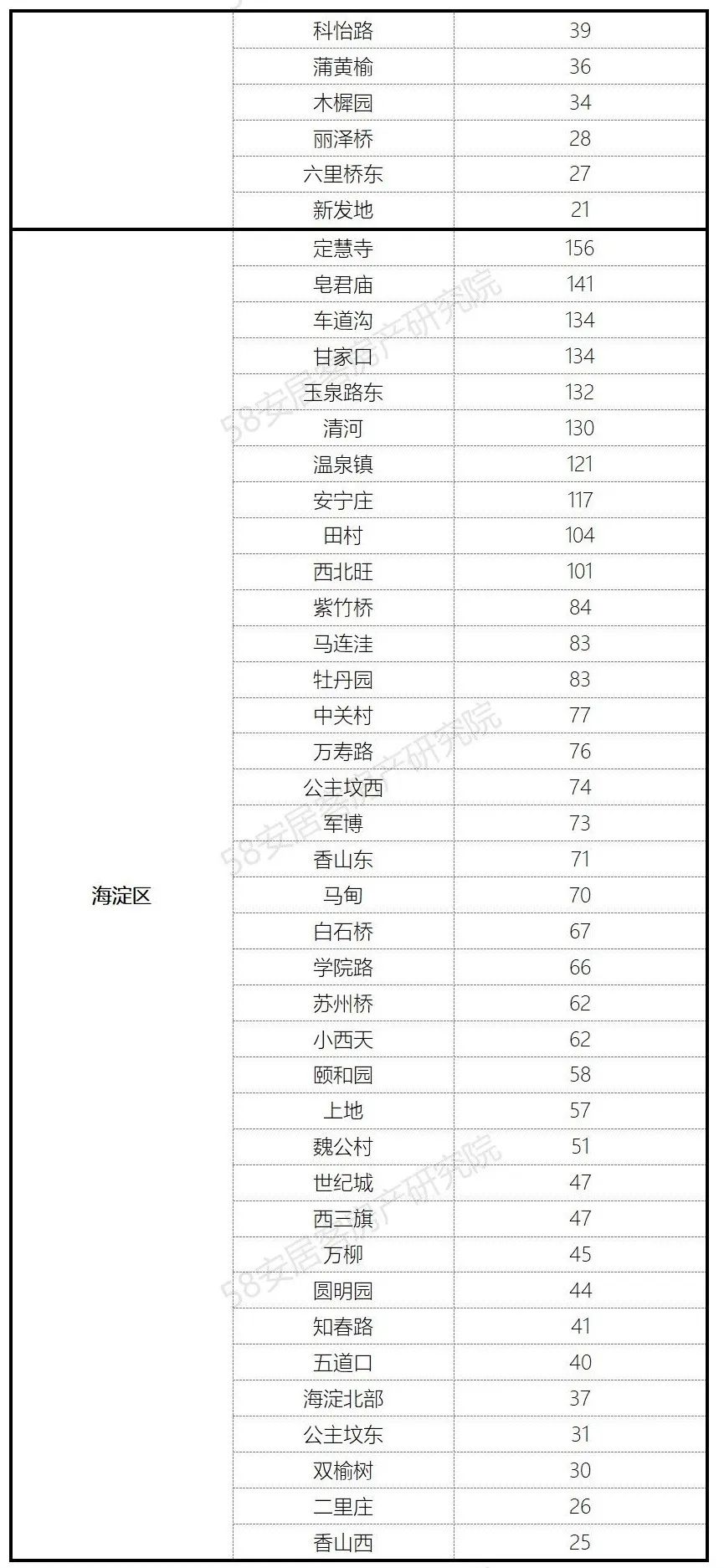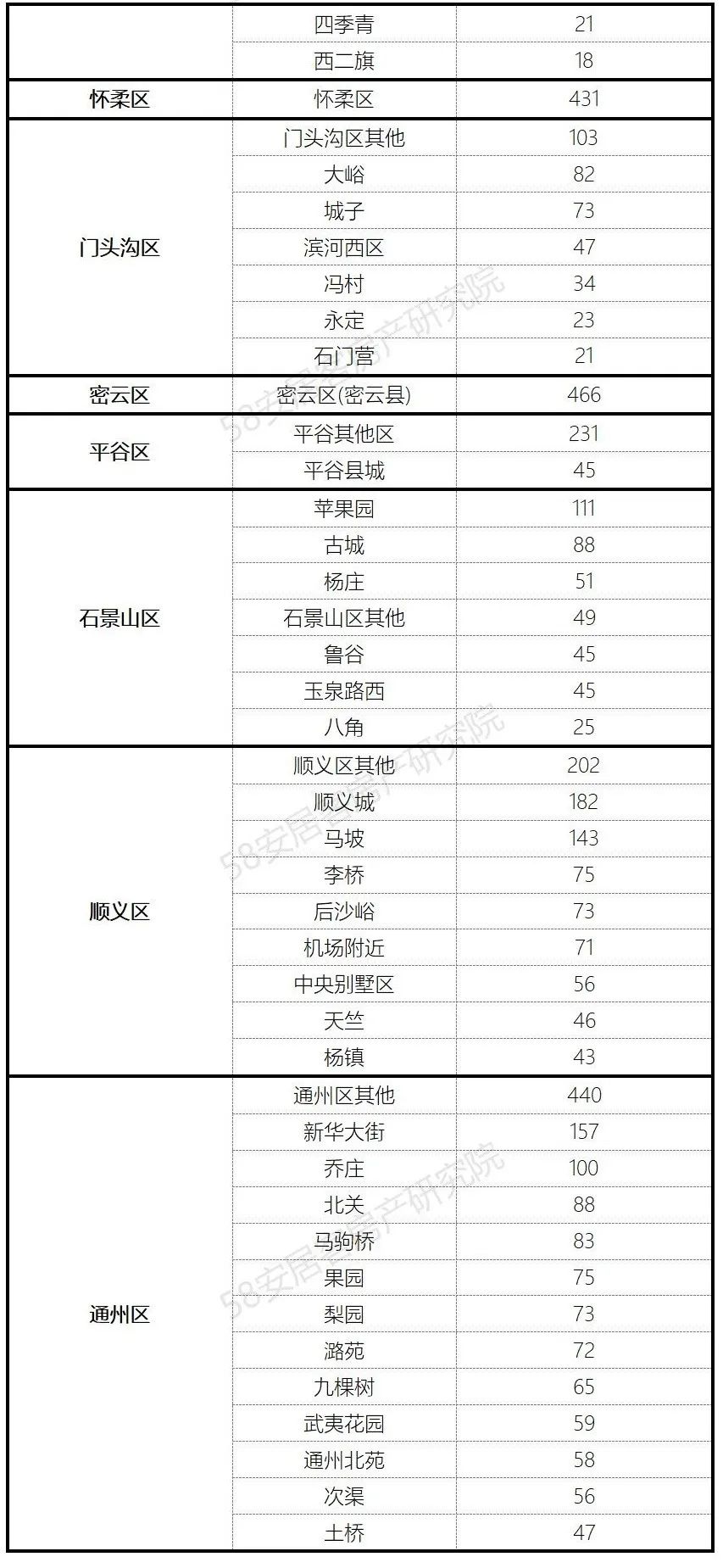 1、各行政区小区均价