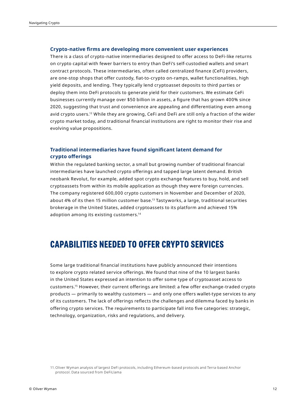 加密资产持有者通常通过受监管银行系统之外的加密原生交易所进入市场。正因为如此,加密原生中介可能无法满足潜在的需求:许多潜在客户可能会在受监管的银行系统之外进行的交易中使用加密原生交易所,这会导致摩擦和阻碍。与此同时,一些提供大部分零售和机构加密服务的非银行机构已经成长为大型上市公司。这引起了包括银行、券商、资产管理公司和市场基础设施提供商在内的传统中介机构的关注。