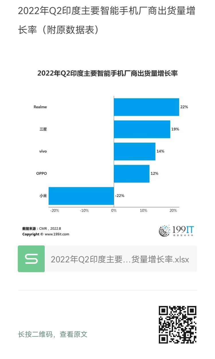- 2023年印度主要智能手机厂商出货量及同比(附原数据表)