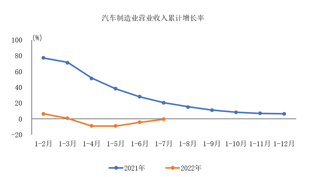 中国汽车工业协会: 2022年1-7月汽车制造业完成营业收入48787.8亿元 据中国汽车工业协会整理的国家统计局数据显示,2022年1-7月,汽车制造业完成营业收入48787.8亿元,同比下降0.3%,降幅比1-6月收窄3.9个百分点,占规模以上工业企业营业收入总额的比重为6.4%。 更多阅读:中汽协会:2020年1-11月汽车制造业完成营业收入72352亿元 同比增长2.9%中国汽车工业协会:2022年1-8月汽车制造业完成营业收入56984.5亿元 同比增长3.3%中国汽车流通协会:2020年4月中国进口汽车市场月报中国汽车工业协会:2023年1-2月我国汽车商品出口金额前十国情况简析2020年1月份京城汽车市场分析中国汽车工业协会:2022年3月前十位轿车品牌销量排名中国汽车流通协会:2020年3月份国内狭义乘用车市场销量达104.5万辆 同比下降40.4%中国汽车工业协会:2021年5月汽车工业运行情况简述中国汽车流通协会:2020年第一季度豪华品牌新增授权4s店57家 退网4s店41家中国汽车流通协会:2022年4月中国汽车保值率报告商务部:2020年1-5月我国汽车出口37.3万辆中国汽车流通协会:2024年6月中国进口汽车市场情况中国汽车工业协会:2024年6月海关进出口情况简析乘联分会:2024年7月新能源乘用车厂商批发销量快讯中国汽车流通协会:2024年6月全国二手车市场深度分析
