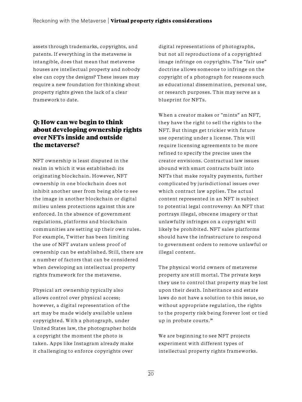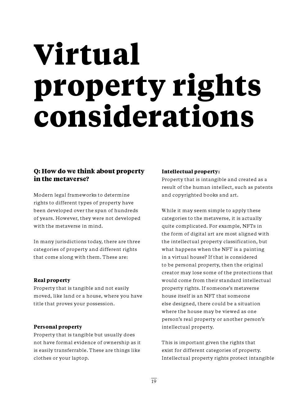 确定不同类型财产权利的现代法律框架已经发展了数百年。但是,它们的开发并未考虑到元宇宙。