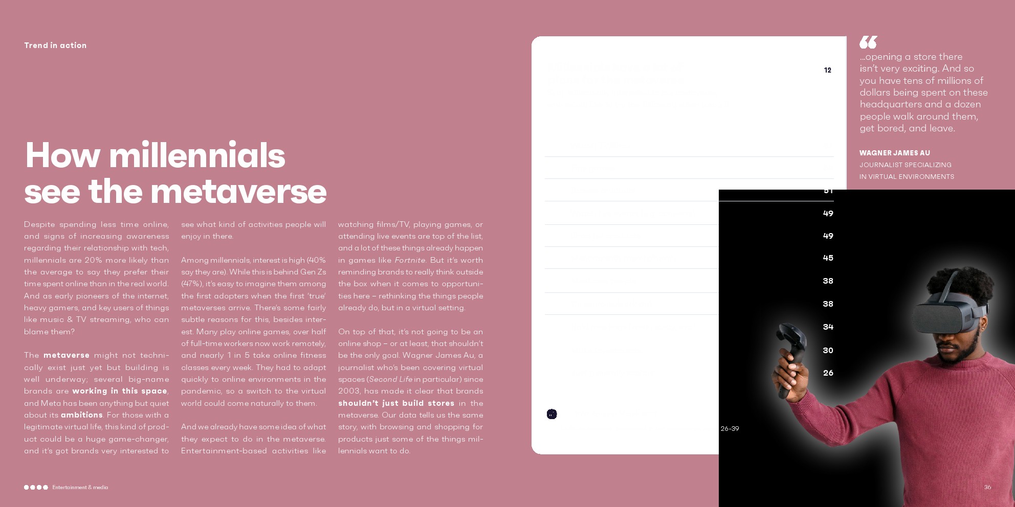 千禧一代对虚拟世界最感兴趣,仅次于Z世代。但是,要真正吸引他们,需要提供各种活动,而不仅仅是新的购物方式,包括在现实世界中已经享受的不同媒体和爱好。