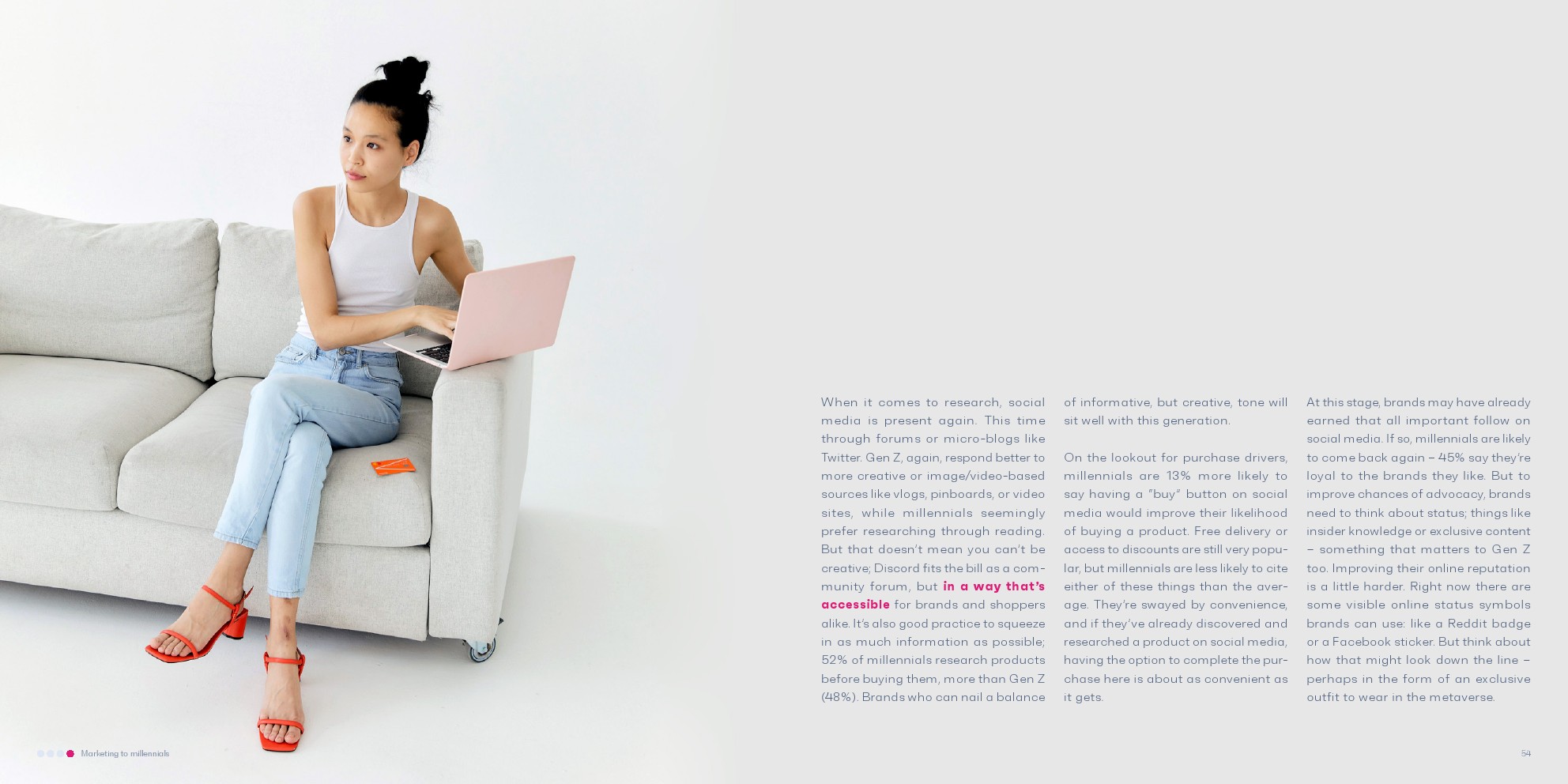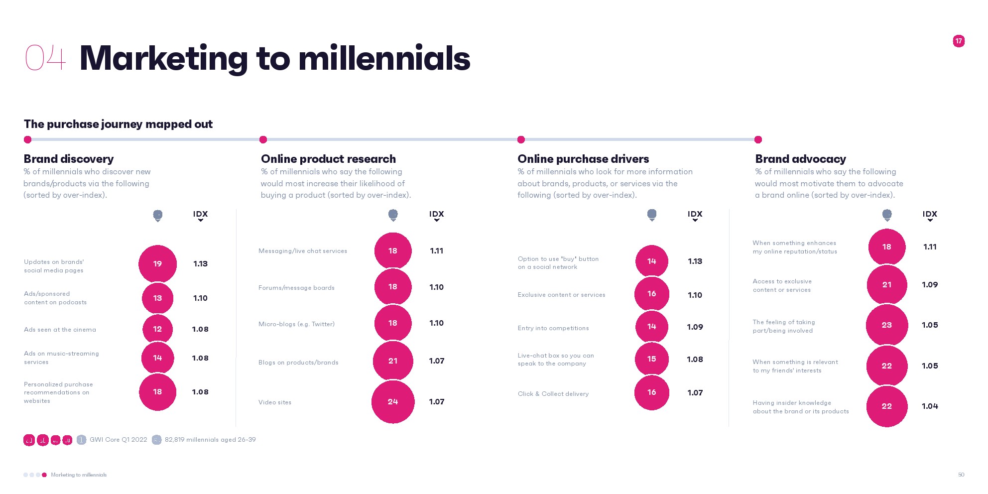 社交媒体是千禧一代购买之旅的核心,在某些方面,比Z世代更重要。品牌需要强大的社交媒体存在,但通过实施让他们在不打开新窗口的情况下发现和购买产品的方法,他们更有可能被培养成回头客。