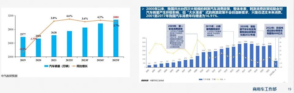 - 观点①:我国汽车市场将继续温和增长,到2025年有望冲击3000万辆规模;汽车市场呈现“供给受限,消费有余”,未来几年汽车市场将保持温和增长,预计年均增速4%左右,“大水漫灌”式的刺激政策,不会创造需求只会透支需求,刺激政策短期对市场产生积极影响。