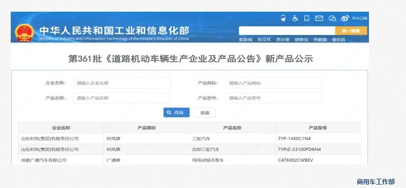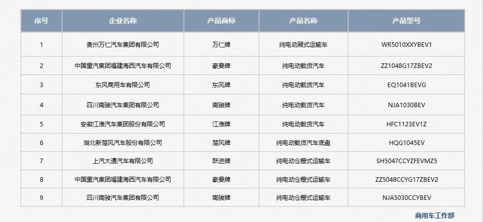 - 第361批新产品公示共发布1款纯电动厢式运输车、5款纯电动载货汽车(1款纯电动载货汽车底盘)、3款纯电动仓栅式运输车。
