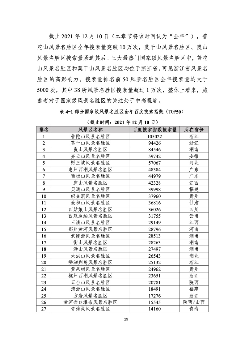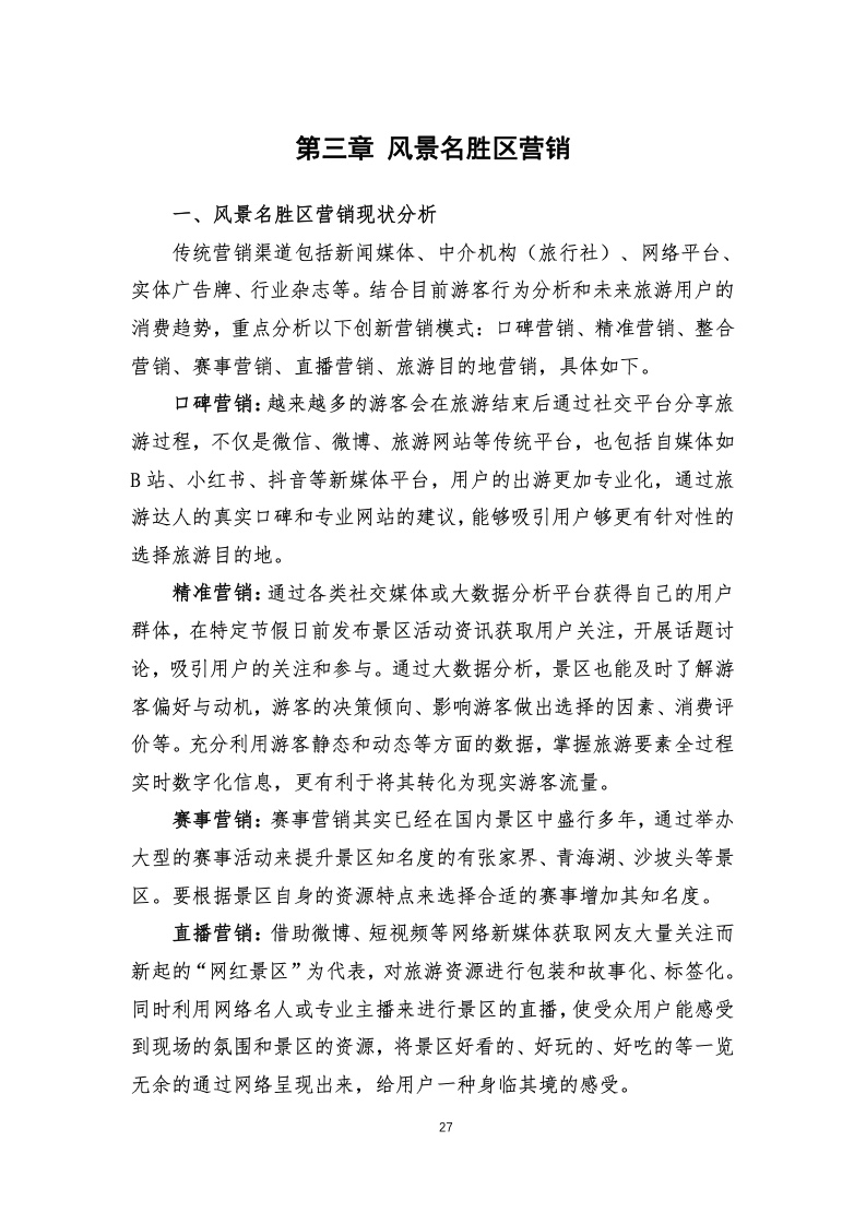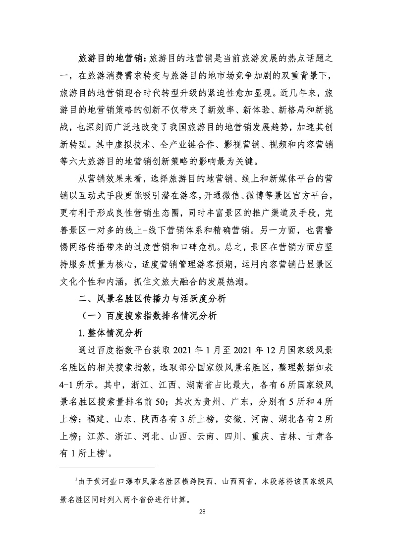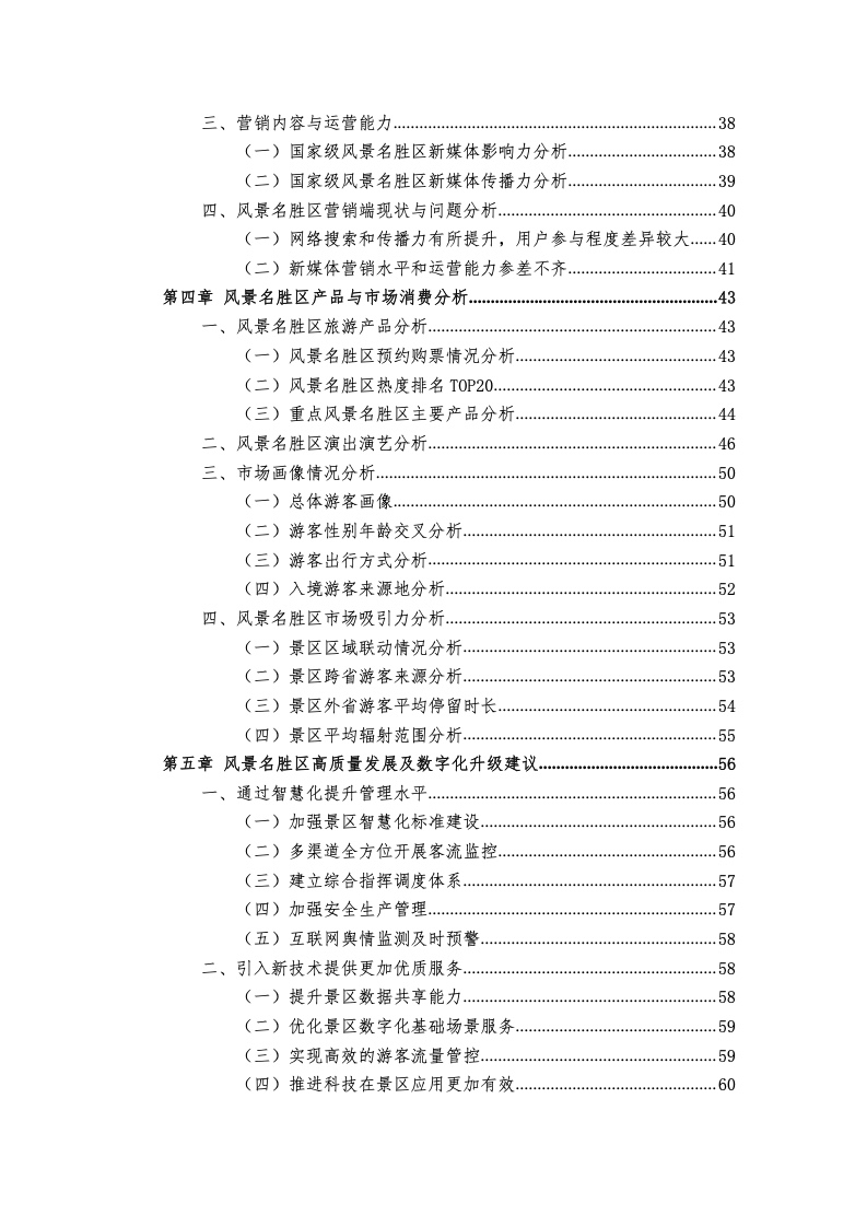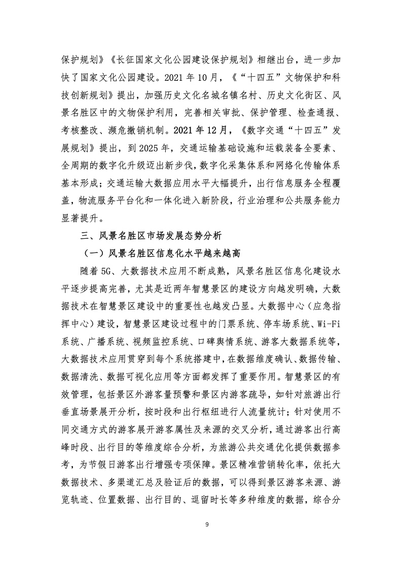 报告基于部分移动运营商数据、OTA 数据和风景名胜区管理数据,从不同维度对风景名胜区管理、服务、营销、游客消费等方面的发展现状进行调查研究分析,并对风景名胜区高质量发展和智慧化升级建设提出意见和建议,为风景名胜区提升保护管理水平,丰富服务业态,推进个性化服务内容建设,加快转型升级等方面提供参考与指导。