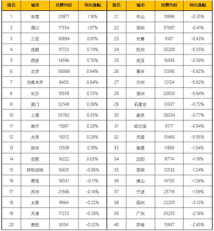 2022年8月,全国40城二手房挂牌均价为20303元/平方米,环比下跌0.30%。二手房挂牌均价出现连续两个月出现明显回落,其中40城中有26城出现下跌,跌幅最大的济南、广州和福州都出现2%以上跌幅,上涨城市为14个涨幅最大的东莞和海口涨幅超1%。