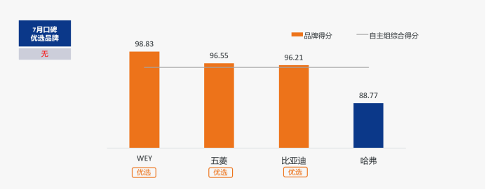 《报告》显示,本月消费者消费者评价样本覆盖的自主品牌数量12个,符合筛选“消费者口碑优选品牌”条件的有4个品牌;获得“2022年8月中国汽车售后服务质量消费者口碑优选汽车品牌—自主品牌组”的汽车品牌是:WEY、五菱和比亚迪。