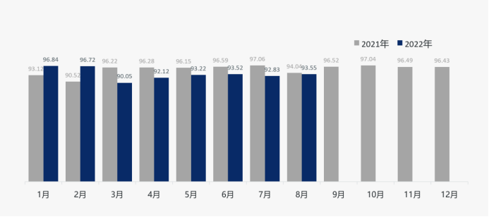 《报告》显示,2022年8月,汽车销售服务口碑指数为93.55分,环比提升0.72分。本月数据覆盖了全国101个1~5线城市,165家经销商,33个品牌的1742个有效样本量。