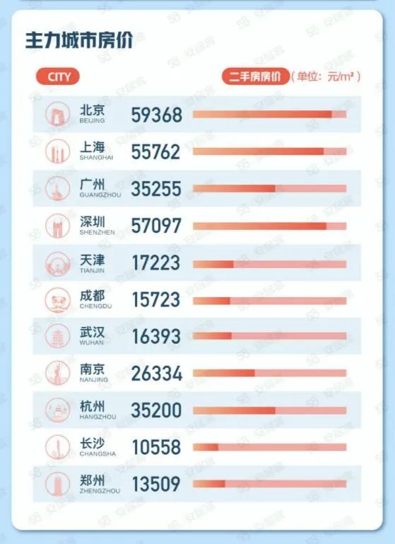 数据显示,8月全国65个主要城市二手房挂牌均价为16814元/㎡,环比下跌0.42%,65城中有20城二手房挂牌房价环比上涨。一线城市中,北京二手房挂牌均价分别为59368元/㎡、深圳为57097元/㎡、上海为55762元/㎡、广州为35255元/㎡。新一线城市中,杭州二手房挂牌均价为35200元/㎡,南京二手房挂牌均价为26334元/㎡。