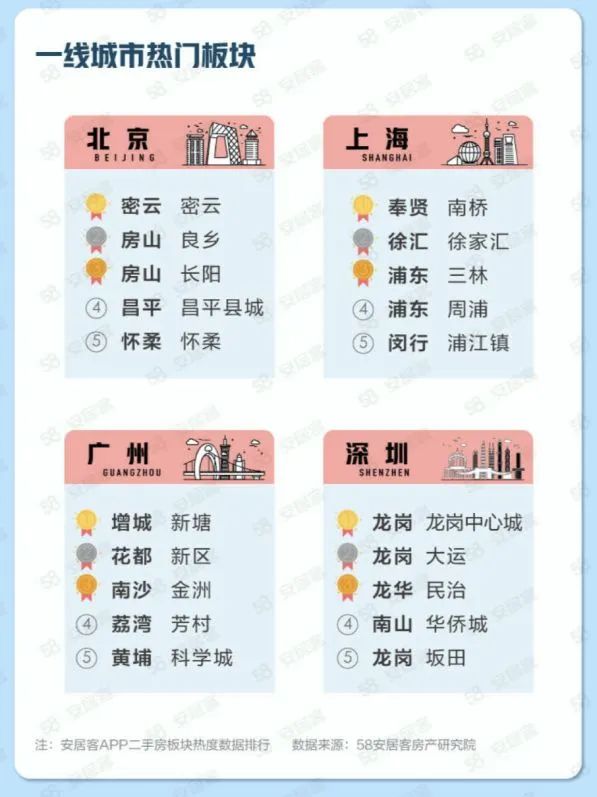 热门板块方面,北京密云、良乡、长阳、昌平县城和怀柔;上海南桥、徐家汇、三林、周浦和浦江镇;广州新塘、新区、金洲、芳村和科学城以及深圳龙岗中心城、大运、民治、华侨城和坂田均备受购房者的青睐。