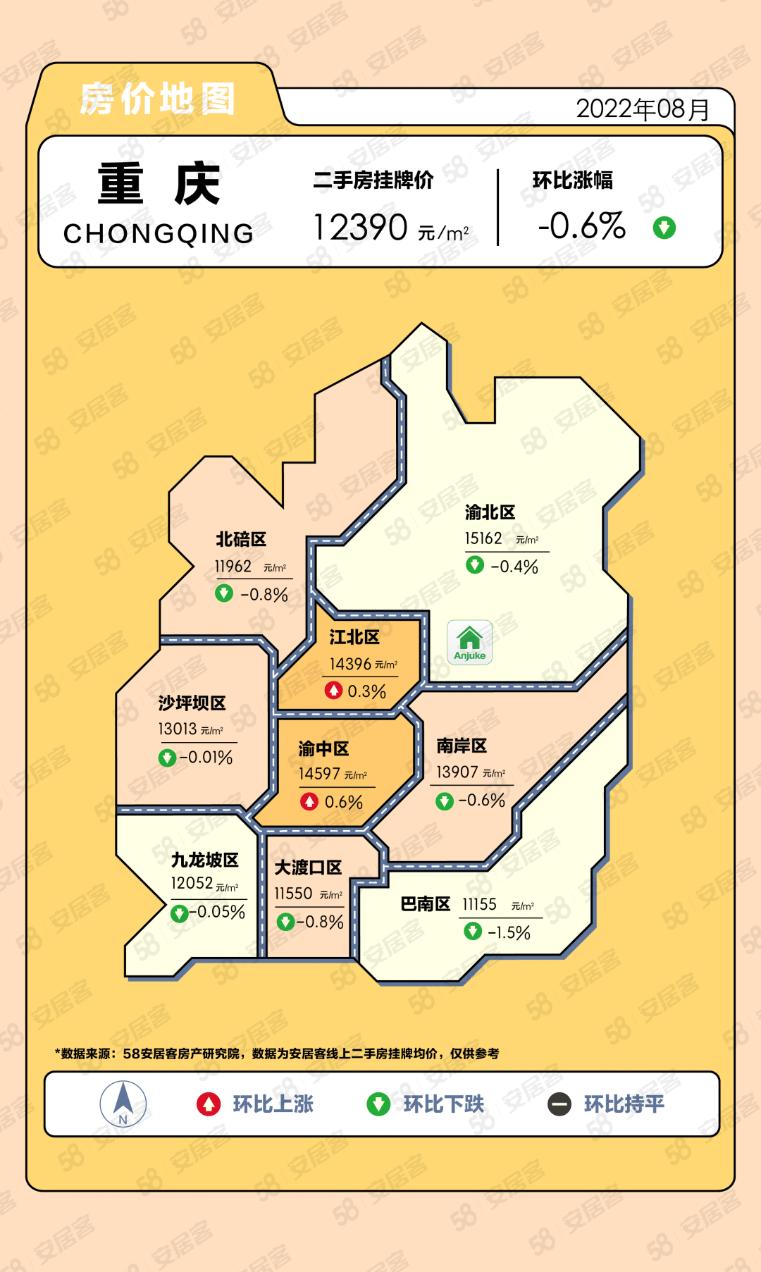 成都8月二手房挂牌价格为15723元/平方米,环比上涨0.7%,成华、新都、郫都、金牛区域二手房挂牌价格环比下跌。重庆整体8月二手房挂牌价格12390元/平方米,环比下跌0.6%,主城区9区中,江北、渝中区域二手房挂牌价格环比上涨。天津8月份二手房挂牌价格17223元/平方米,环比下跌0.3%,南开、和平、宁河、河北、滨海新区、红桥、静海地区二手房挂牌价格环比上涨。