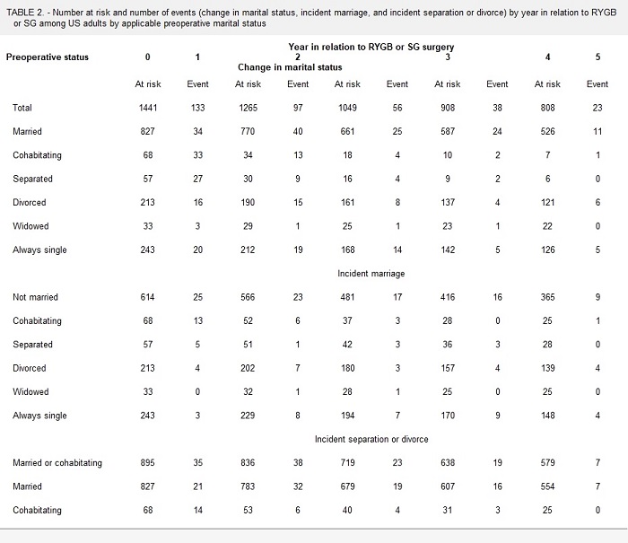 表 2 – 按术前婚姻状况,美国成年人发生“风险事件”的数量。