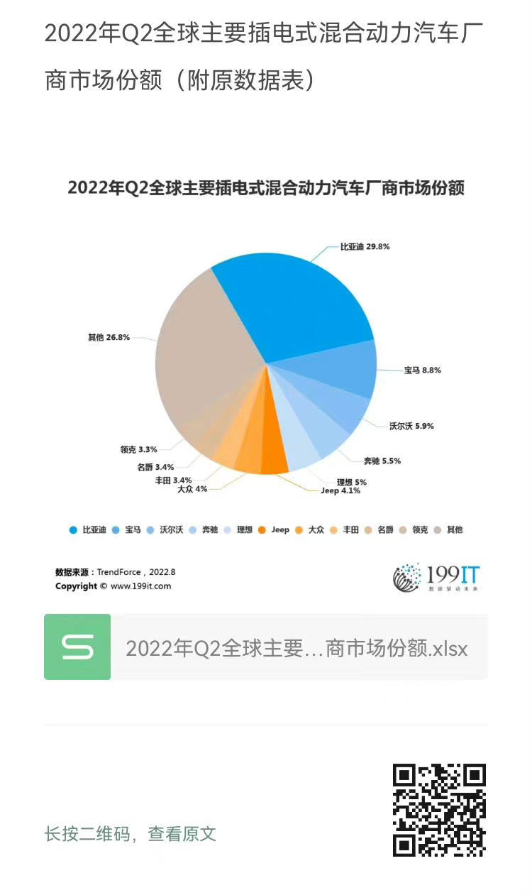 - 2022年Q3全球主要插电式混合动力汽车厂商销量市场份额(附原数据表)