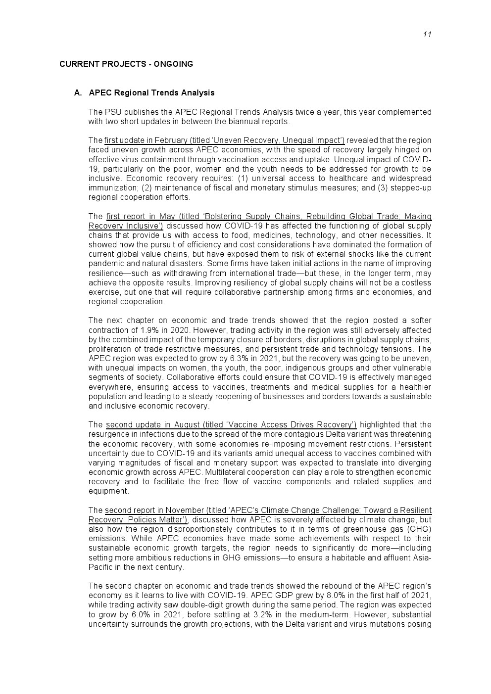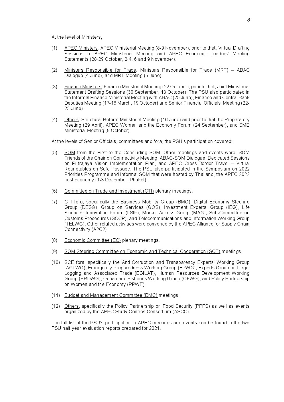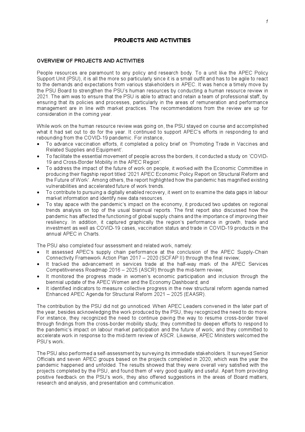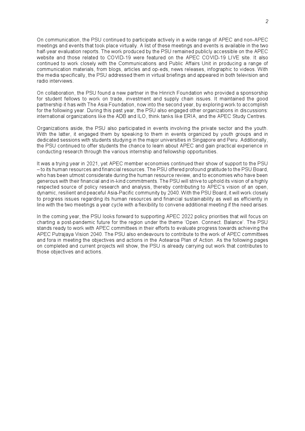 在人力资源审查工作继续进行的同时,PSU坚持不懈,完成了今年计划要做的事情,继续支持APEC应对新冠大流行并从中恢复。