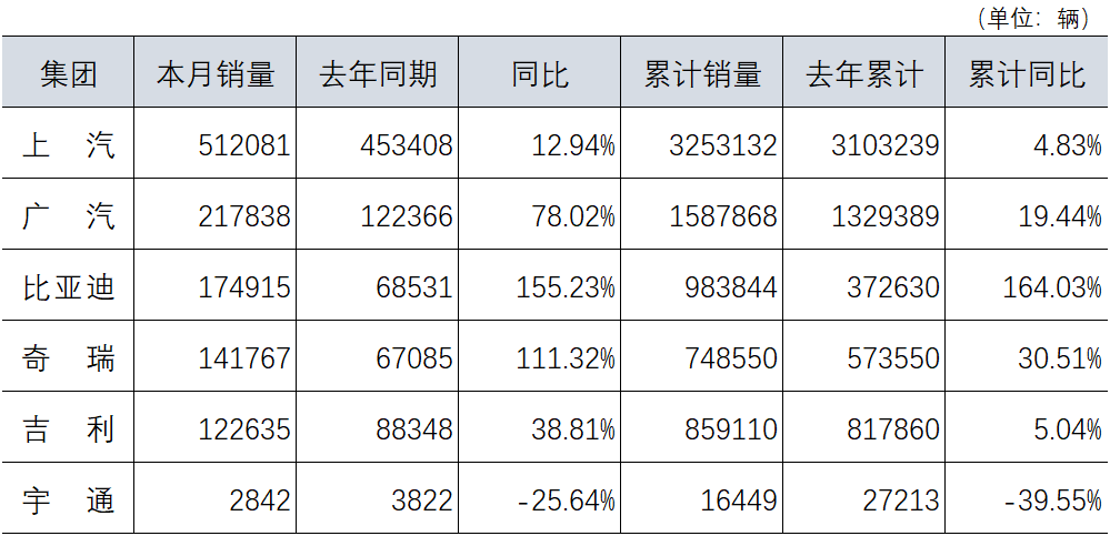 中汽协会:主要汽车企业2022年8月份销量数据 更多阅读:中汽协:2022年6月份主要汽车企业销量数据中汽协:2021年6月主要汽车企业销量中汽协:2023年4月份主要汽车企业销售情况中汽协:2022年2月份主要汽车企业销量数据中汽协:2022年5月份主要汽车企业销量数据中汽协会:2024年1-4月前十位汽车生产企业(集团)销售情况简析中汽协会:2021年1-4月汽车商品前十国出口金额排名中汽协会:2020年12月汽车商品进出口情况简析中汽协会:2020年前十家汽车生产企业出口量排名中汽协会:2020年前十家中国品牌汽车生产企业销量排名中汽协会:2020年前十家客车生产企业销量排名中汽协会:2020年1-11月汽车制造业完成营业收入72352亿元 同比增长2.9%中汽协会:2020年1-11月汽车制造业累计实现利润4781.1亿元,同比增长7.2%中汽协会:2021年1-5月汽车销量排名前十位的企业集团销量合计为944.5万辆中汽协会:2021年1-5月前十家汽车生产企业出口量排名