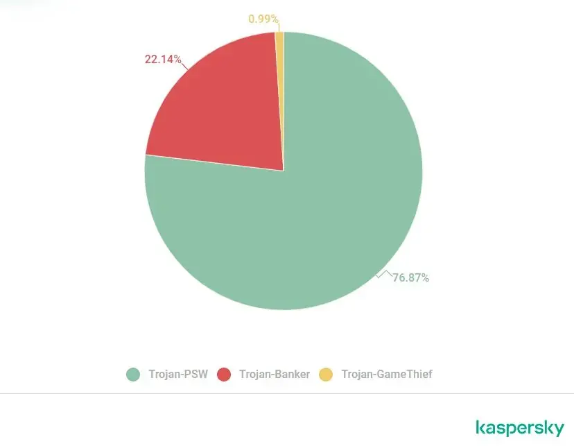 使用热门游戏传播的其他类型威胁包括非病毒:AdWare (4.19%)、Trojan (2.99%)、DangerousObject (0.86%)、Trojan-SMS (0.49%)、Trojan-Downloader (0.48%) , not-a-virus:WebToolbar (0.47%), not-a-virus:RiskTool (0.45%), Exploit (0.34%) 和 Trojan-Spy (0.29%)。尽管这类威胁的比例很小,但对于受影响的人来说,捕捉它们可能是一个巨大的问题。例如,特洛伊木马威胁可能会破坏、窃取或对个人数据或网络造成其他有害行为。