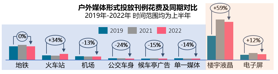 线下渠道作为消费者一个不可或缺的重要场景,品牌更需持续关注户外媒介市场,尤其是在今年因疫情波动导致户外行业整体处于低价格涨幅的情况下,及时且灵活地依据投放需求变更投资方向。