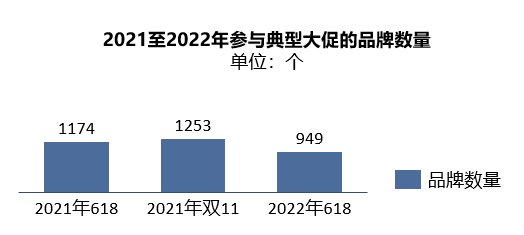 上半年来,国内规模以上工业企业利润累计同比增速降至1%,受灾最为严重的4、5月分别同比下降8.5%、6.5%,导致各行各业均对支出变得更为审慎,并在短期内和2020年上半年类似,开始削减不必要的支出,其中就包括了营销预算的下降。以往来看,参与线上大促尤其是在疫情过后的购物节,并将营销重点转移线上效果类广告,一般是品牌普遍采取的营销发力方式。然而因经济进入下行周期,国际形势动荡造成的大通胀影响了资金流转方向,叠加数字媒体的价格因需求大幅上涨,数据显示2021年至2022年的三个线上大促节点,参与的品牌数量及其中新品牌的数量占比均出现较大幅度的下滑,新品牌的投放规模出现同比减少的现象。