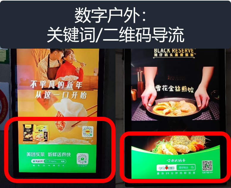 从宣传内容上来看,高线城市的户外广告依托于更为完善的线上购物平台以及物流体系,结合户外广告近几年来不断进行设备数字化保证上下刊效率并增强与数字媒体的协作能力,住宅写字楼的户外广告媒体在高线城市中往往会更多通过关键词或二维码的方式进行线上引流,增强消费者对品牌或产品的认知。