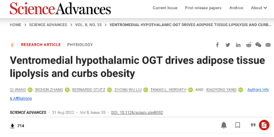 近日,耶鲁大学细胞与分子生理学系的研究团队在Science子刊中发表了新的发现:位于腹内侧下丘脑神经元中的OGT能够调节该神经元的活动,促使脂肪的分解,并对肥胖具有抑制作用。