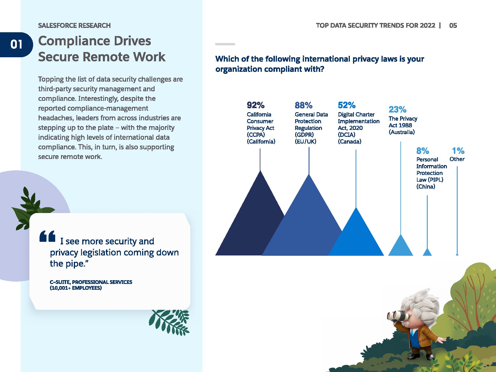 90%的受访IT领导者表示,他们的企业支持分布式劳动力。但他们注意到这样做的主要合规性、供应商管理和数据安全挑战。尽管存在这些挑战,但大多数人都报告了高水平的国际数据合规性。