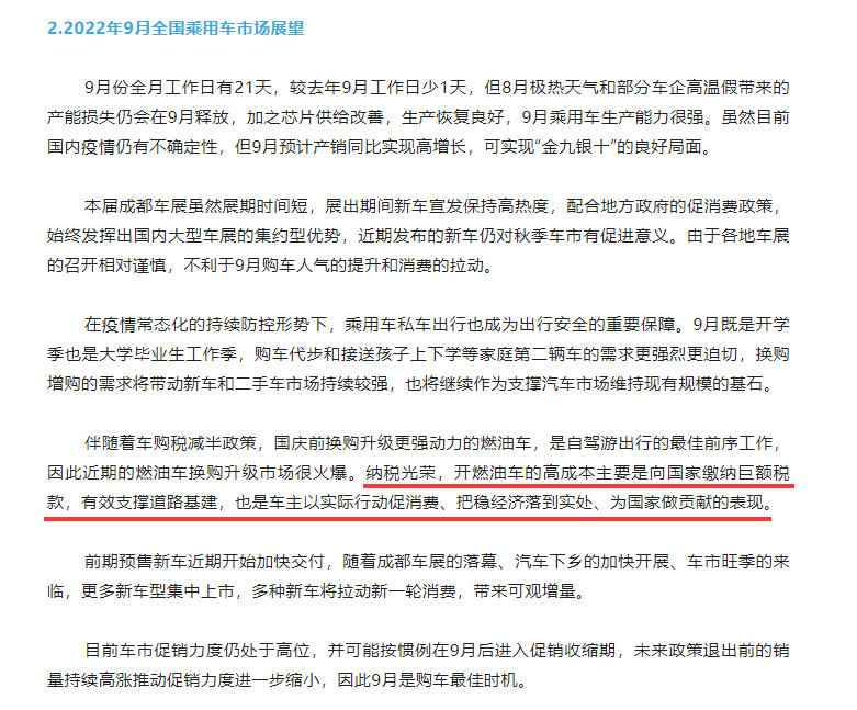 乘联会补充道:纳税光荣,开燃油车的高成本主要是向国家缴纳巨额税款,有效支撑道路基建,也是车主以实际行动促消费、把稳经济落到实处、为国家做贡献的表现。