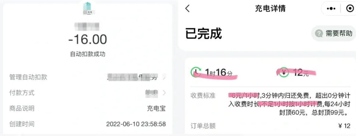 “很多品牌用半小时标单价,将6元/小时,写成3元/30分钟,我身边的人几乎都看错过。以为是3元一小时,等付款的时候才发现踩坑了。”共享充电宝的“定价话术”,更被用户质疑存在模糊、诱导性。