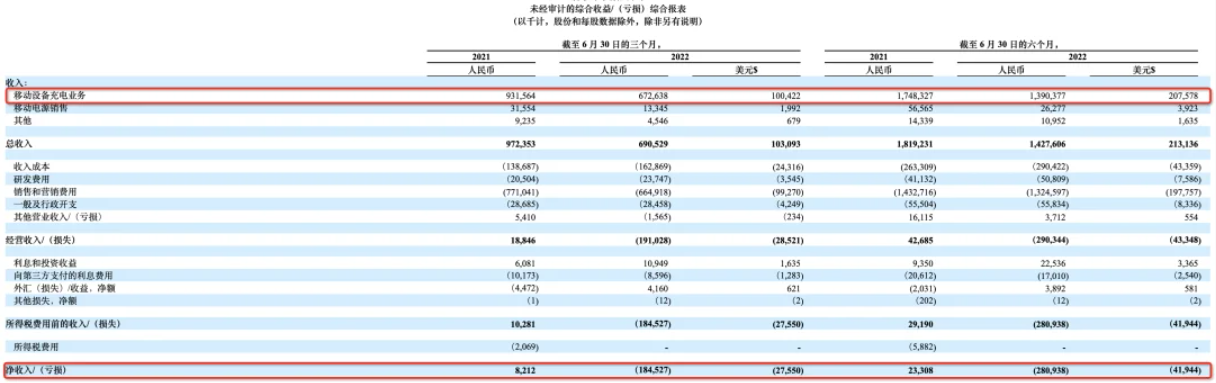 今年上半年,怪兽充电营收14.27亿元,对比去年同期18.19亿元,下滑明显。与此同时,第二季度亏损1.85亿元人民币,一季度亏损0.96亿元,总计亏损约2.8个亿。而其最赚钱的2019和2020年,总计净利润也不过2.42亿元。
