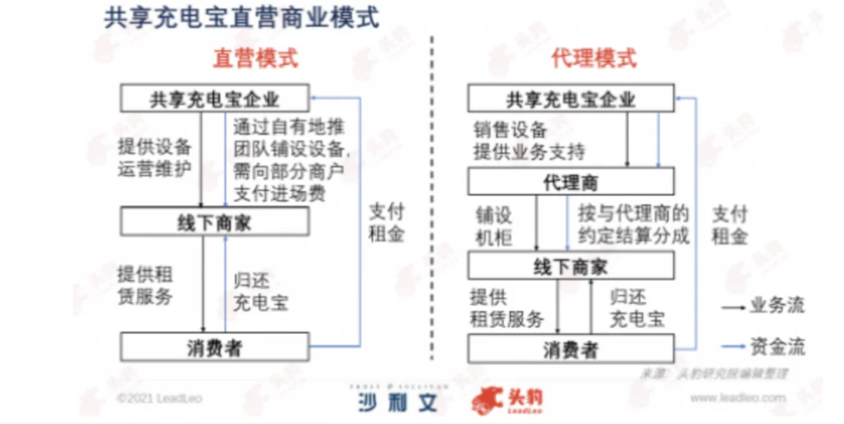 共享充电宝行业,直营、代理模式的差异(图表源自“头豹研究院”)