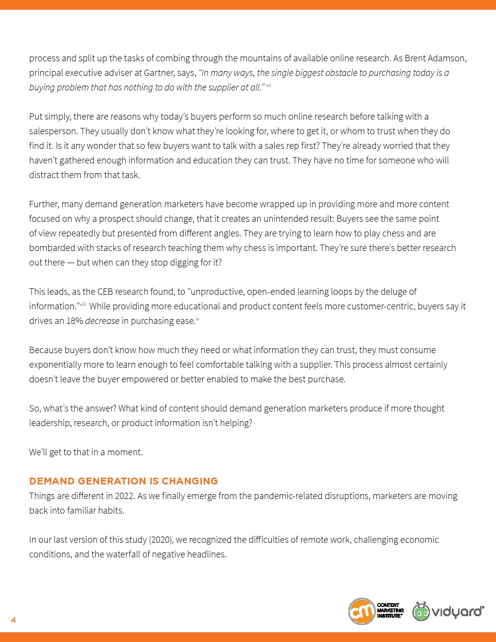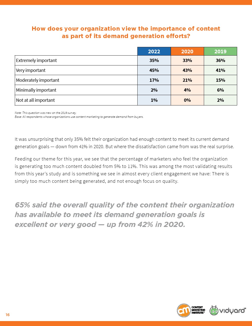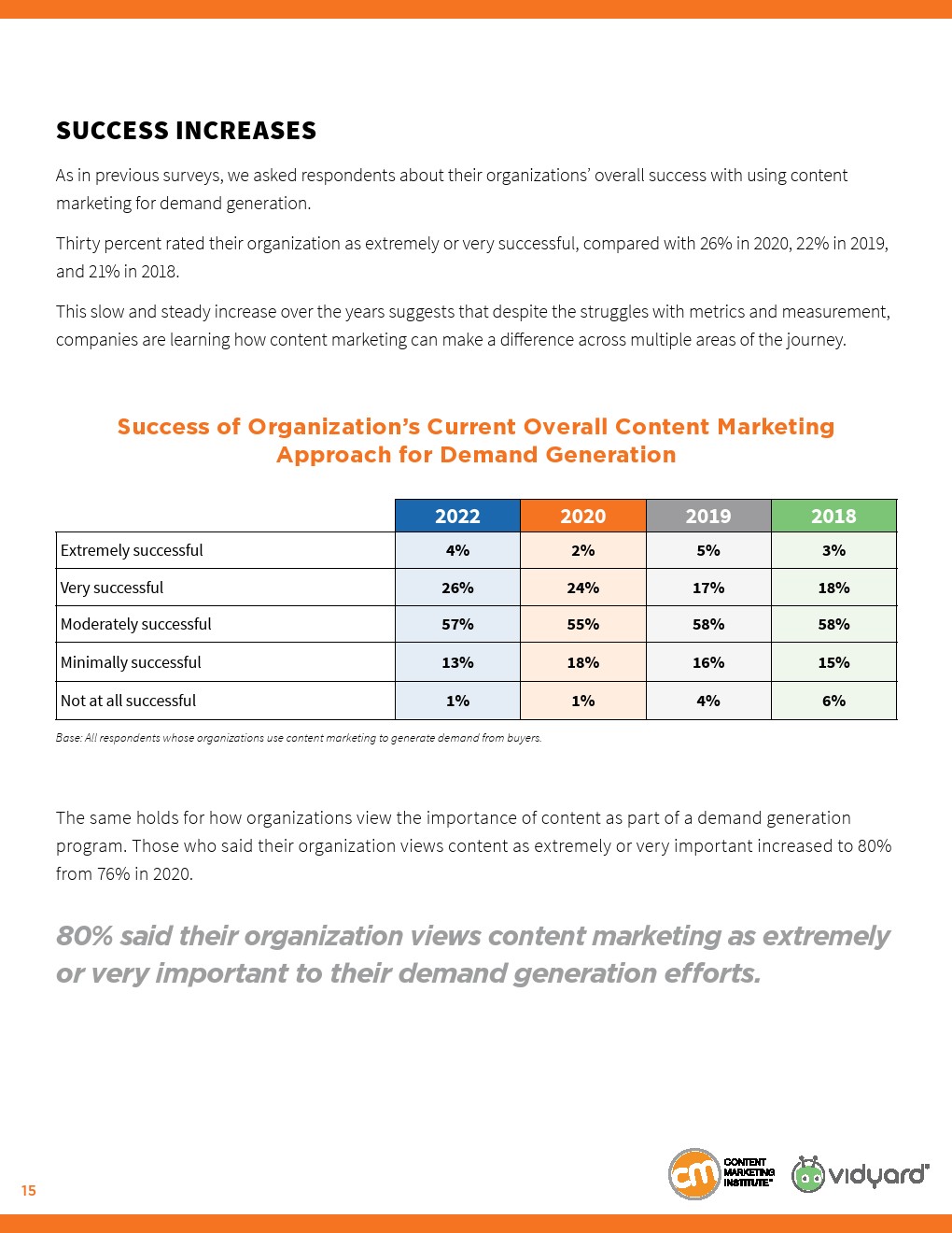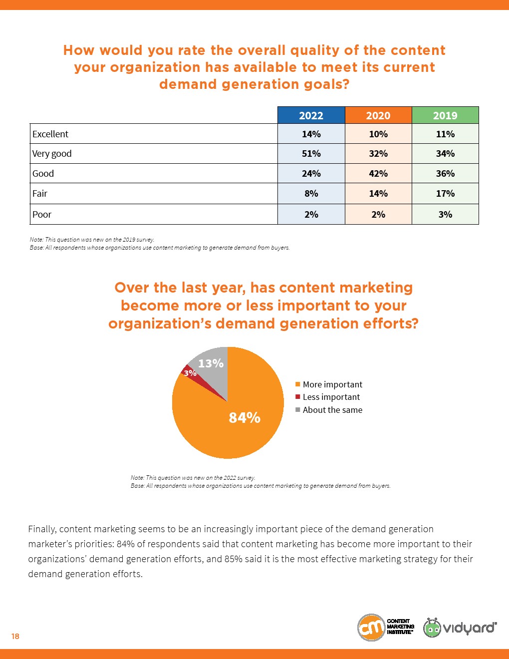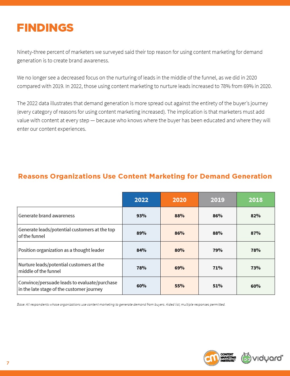 2022年2月和3月,CMI研究团队进行了第四次内容营销需求生成调查,以了解营销人员如何使用内容营销来生成需求。