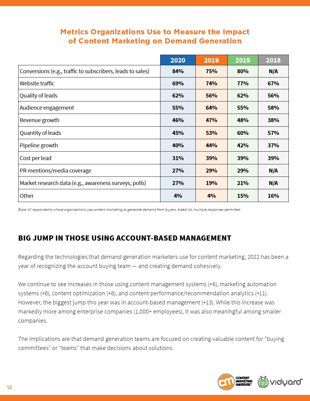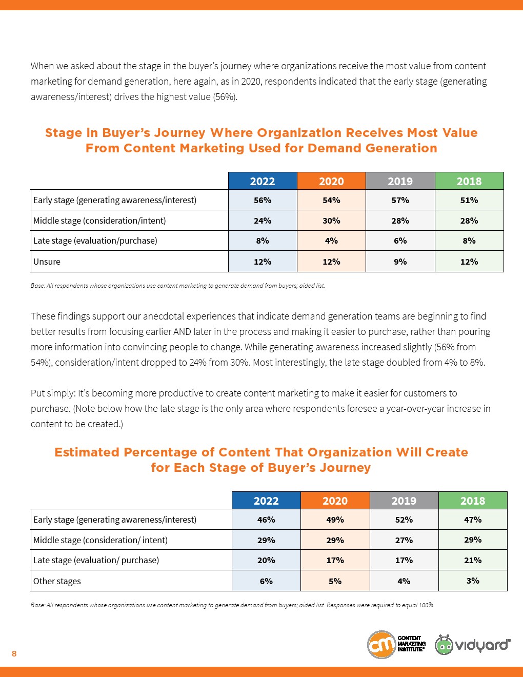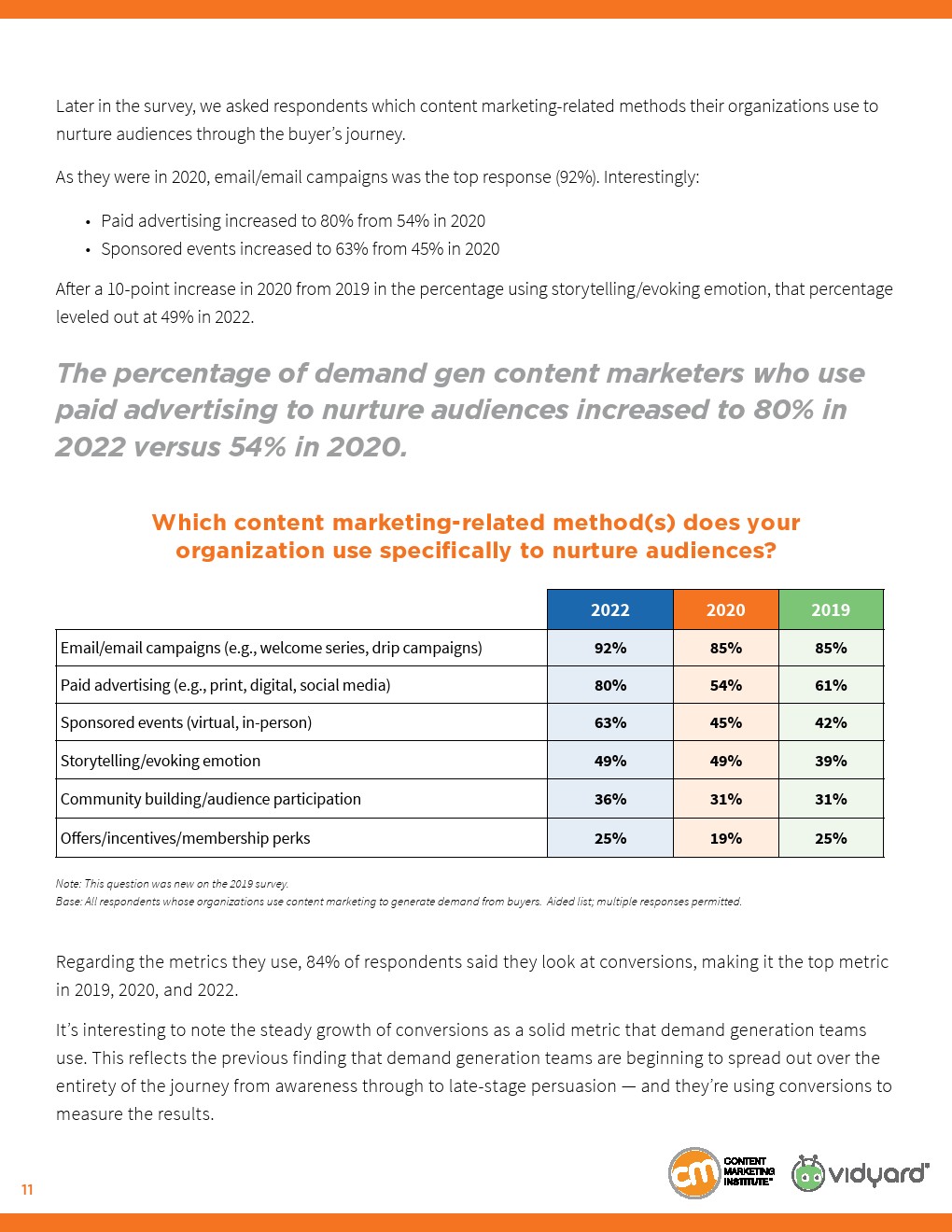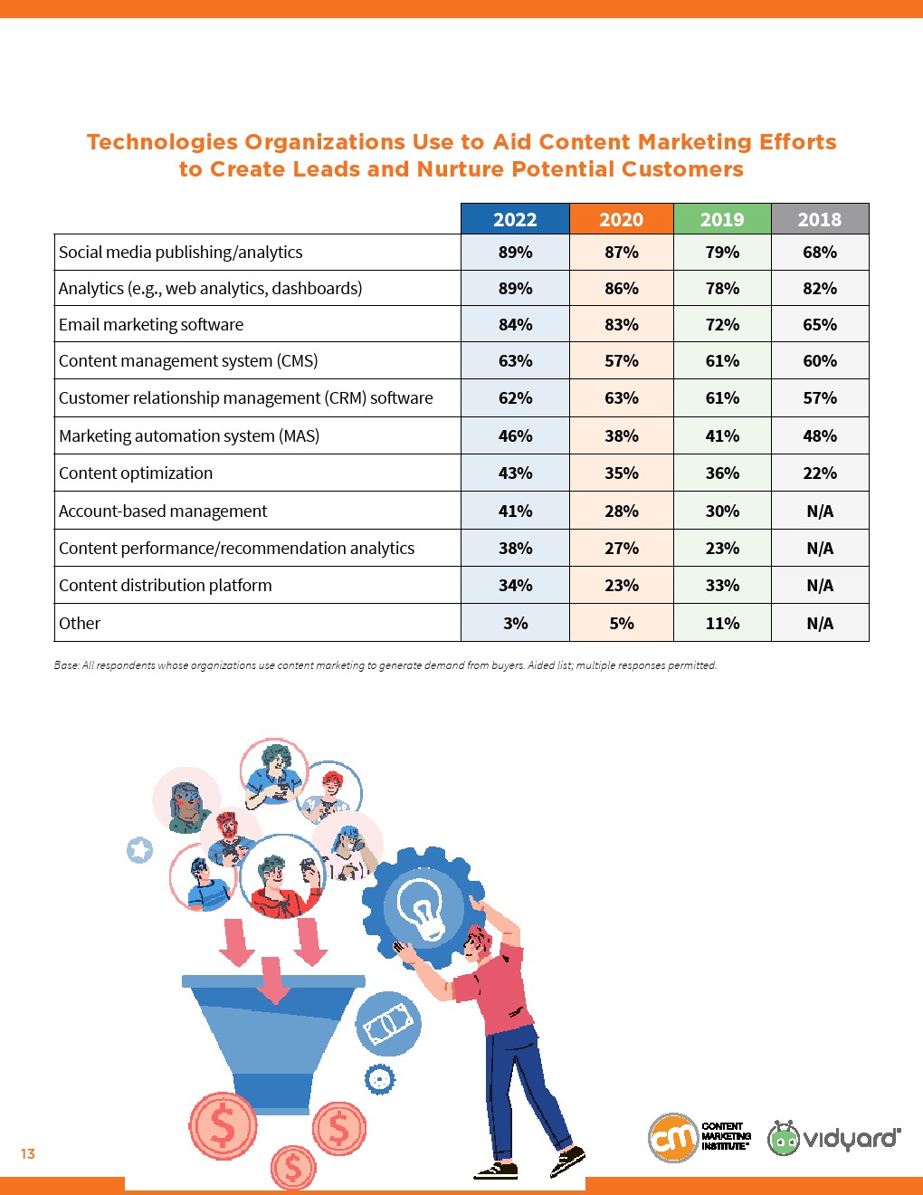 我们不再像2020年那样减少对渠道中间潜在客户培育的关注。2022年,使用内容营销培育潜在客户的营销人员比例从2020年的69%增加到 78%。