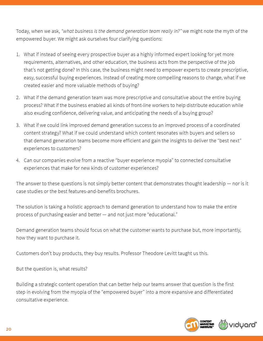 需求生成团队将思想领导力和产品/服务信息倾注到网站和资源中心。这些团队发誓要实现“以买家旅程为中心”。他们倾尽所有精力进行大量的研究、数据和信息,成为“我们为什么要改变”的第一个可用答案。他们寻求实现他们的使命:产生需求。