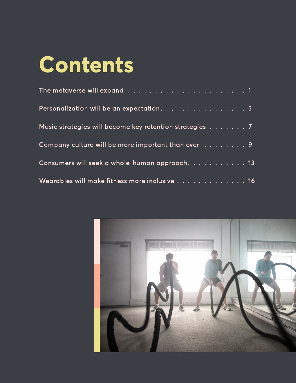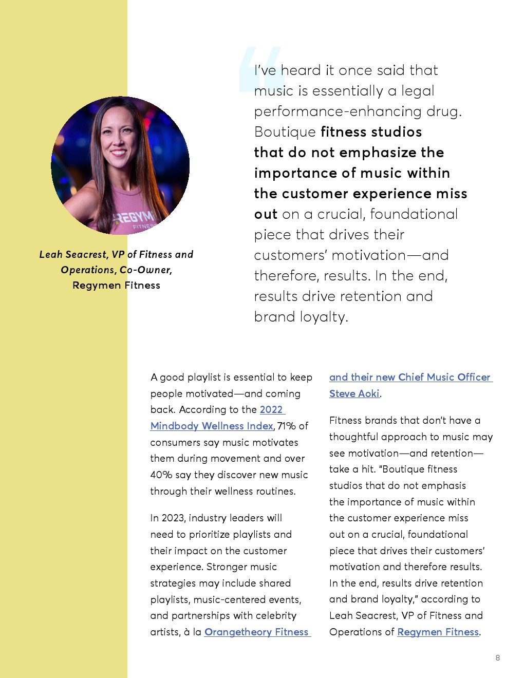 根据 2022 年身心健康指数,71% 的消费者表示音乐能在运动中激发他们的动力,超过 40% 的消费者表示他们通过日常健身发现新音乐。