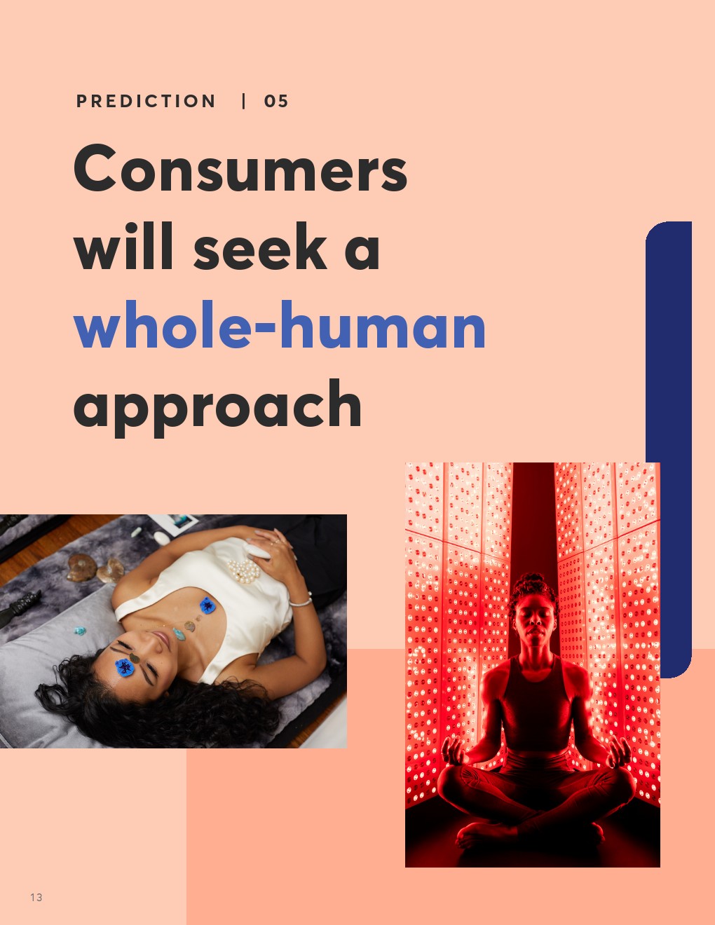消费者已经扩大了他们对健康的定义——它现在包含的不仅仅是保持身材,还包括减轻压力、感觉很自信。它正在寻找一种社区感和归属感。它跨越了心理、身体和精神层面,消费者将最优先考虑心理健康。