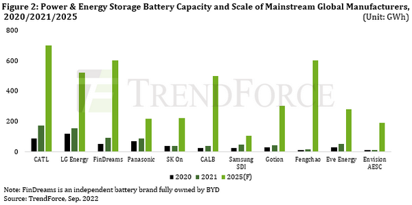 为应对电动汽车(EV)行业迫在眉睫的TWh级市场需求,全球主流动力电池制造商正在加速扩大产能。再加上电化学储能广阔的市场空间,电池厂商产能扩张的速度和规模远超前期。据TrendForce统计,包括宁德时代、LG Energy Solutions、比亚迪、CALB、三星SDI、松下等在内的全球前十大动力电池厂商,他们计划到2025年动力及储能电池产能达到4.2TWh。厂商占比约3.1TWh,电池扩容速度和规模全球领先。