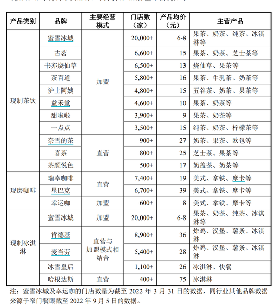 “蜜雪冰城”品牌门店数量 来源:蜜雪冰城招股书