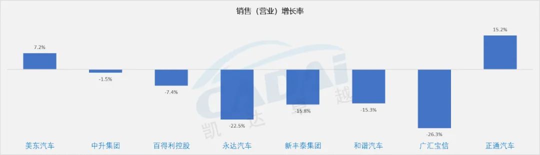 2022年上半年,由于北京、上海、长春等几个核心汽车工业城市存在疫情区域管控的情况,从生产端和供给端挤压汽车零售市场,主营豪华车业务的经销商集团受到很大影响。除了正通集团由于历史原因实现了于较低基数的正增长,以及美东由于并购获得了新的增量收入,其它经销商集团的业绩都受到影响,尤其是布局沿海发达区域的永达汽车和广汇宝信,收入下滑了20%以上。不过随着区域管控的解除,相关汽车消费刺激政策的出台,几家经销商集团的经营情况正在持续好转。