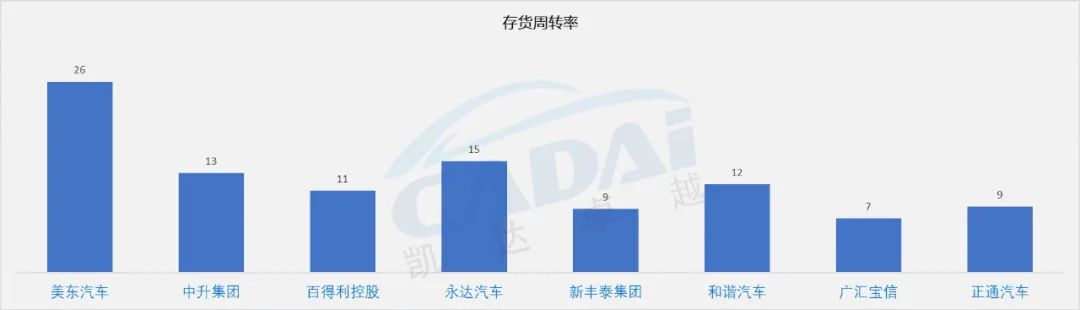 需要指出,这里美东汽车的存货周转26次,是包含新收购店面的总体数据。如果不包含收购店面,美东汽车的存货周转率更高,处于行业的领先水平。