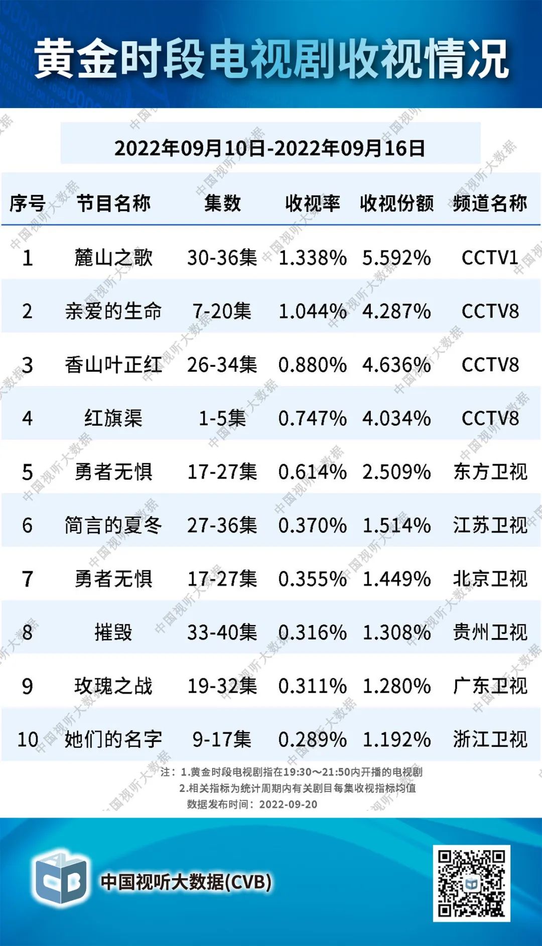 - 中国视听大数据发布:2022年3月19日-3月25日黄金时段电视剧收视情况
